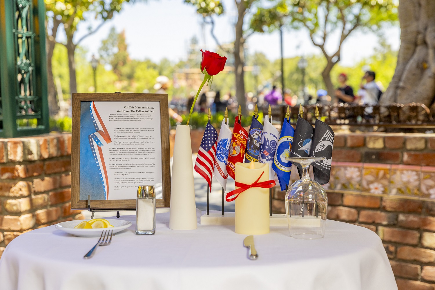 “The Missing Hero Tables we display at this time are meant to be a strong visual symbol of those who are no longer with us, that those who see them may stop for a moment to reflect and hopefully show appreciation for the freedoms we enjoy due to the great sacrifice that these many heroes have given for us,” explained U.S. Navy veteran and Disneyland Resort main entrance operations manager, Nick Filippone.