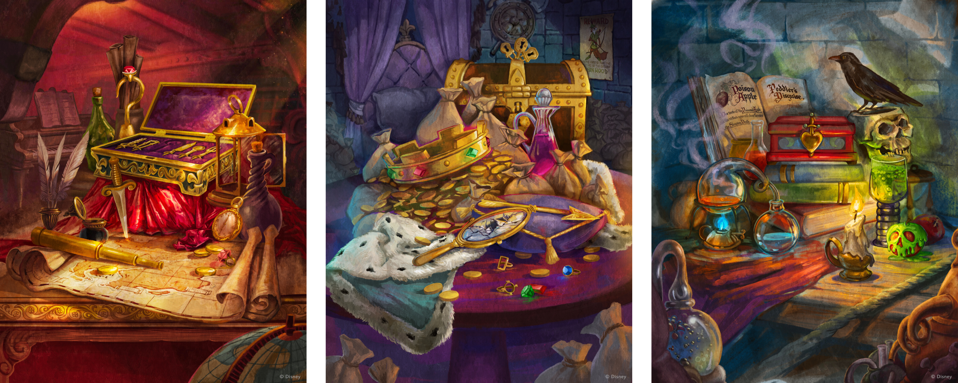 Loflin, who turned her childhood passion for art and Disney animated films into a career designing works for Disney Parks and Disney Cruise Line, is currently creating a collection of three Easter egg-loaded still life paintings inspired by revered Disney Villains – Captain Hook, Prince John and the Evil Queen. Each piece captures the essence of the character with symbolism pulled directly from classic Walt Disney Animation Studios films.