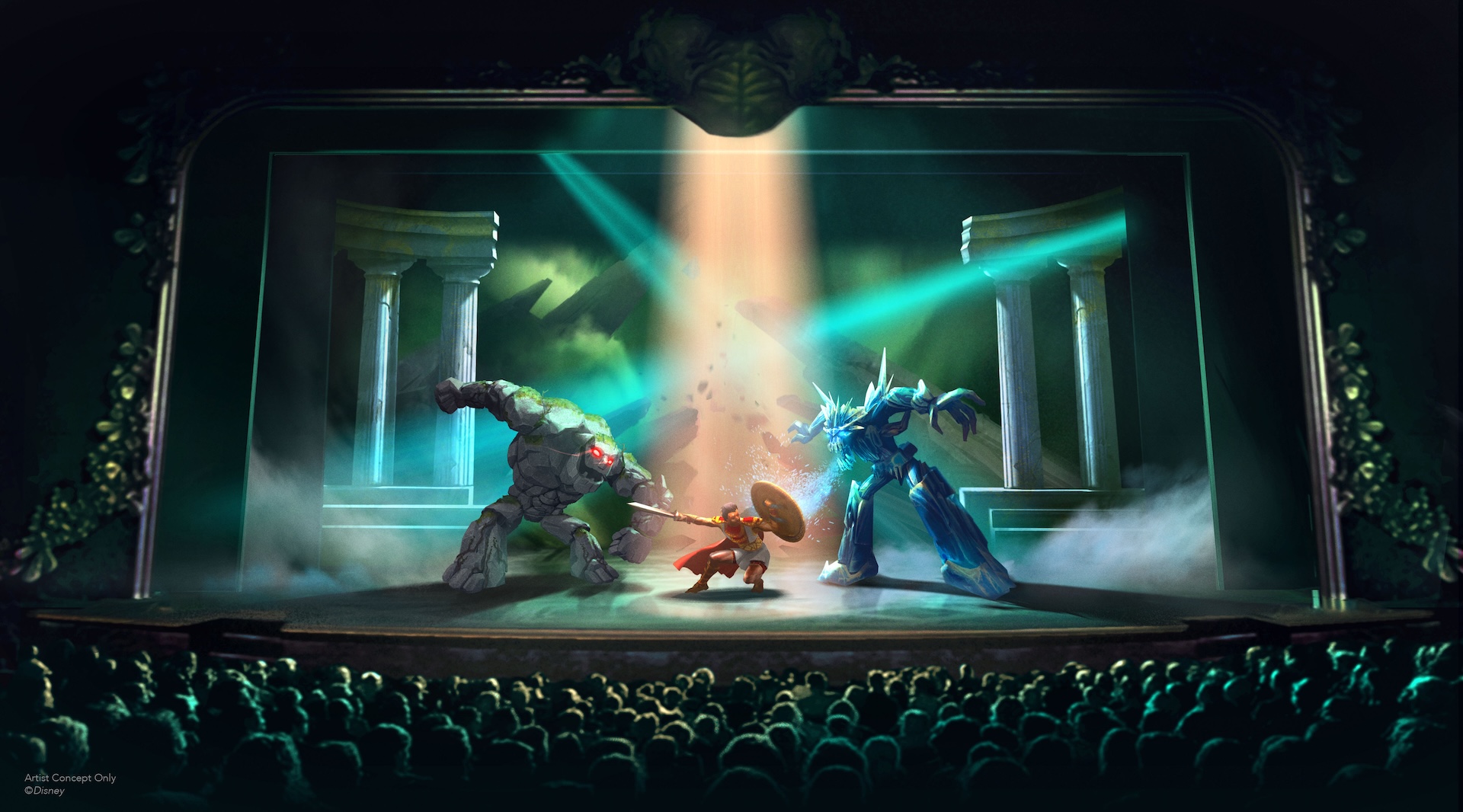 If that doesn’t get you excited for the show, here’s an additional look: a depiction of the show’s iconic battle with the Titans. Learn more about the epic exo-skeleton innovations behind “Disney Hercules” Titans here.