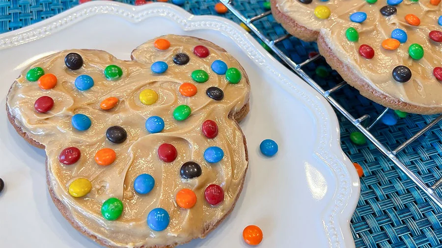 The recipe we’re sharing today features new M&M’S Minis Peanut Butter Chocolate Candies on a Mickey Mouse-shaped peanut butter cookie with peanut butter frosting. It’s the perfect way to celebrate National Peanut Butter Day.