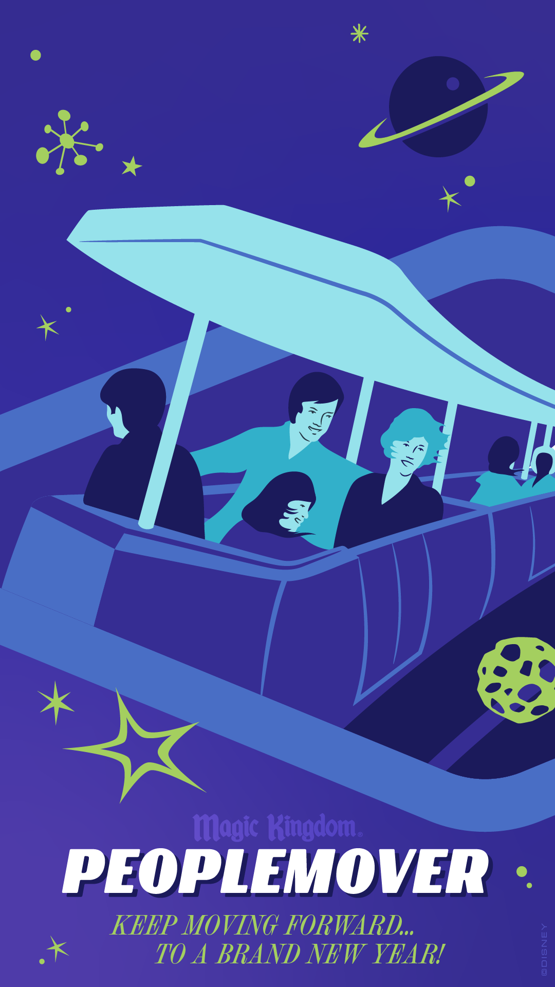 Light up your desktop, mobile device and smart watch with this iconic Magic Kingdom PeopleMover wallpaper. Take a trip into Tomorrowland, welcome the opportunities of the future and keep moving forward to a brand new year!