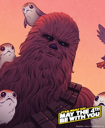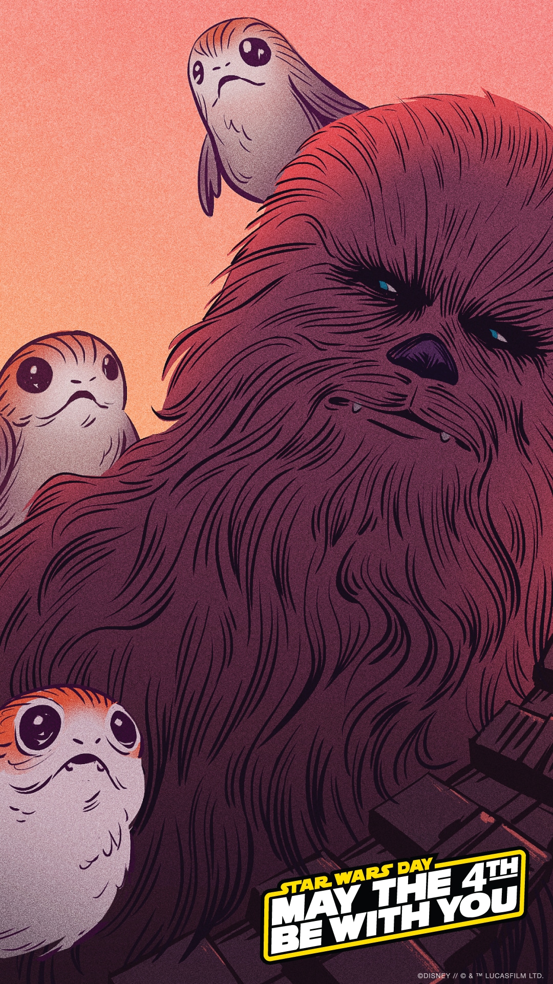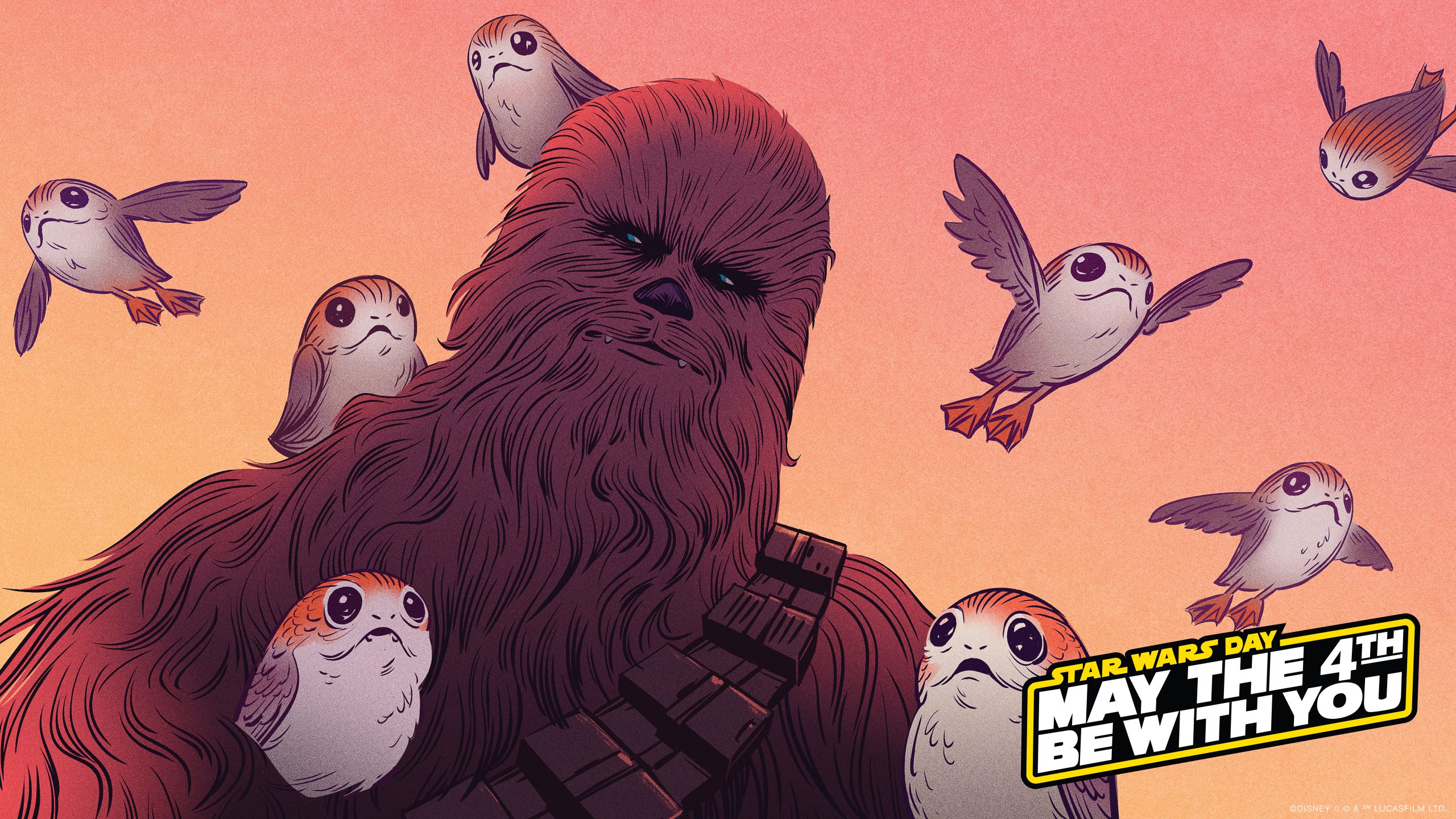 May the 4th Star Wars Chewbacca & Porgs Wallpapers 2024