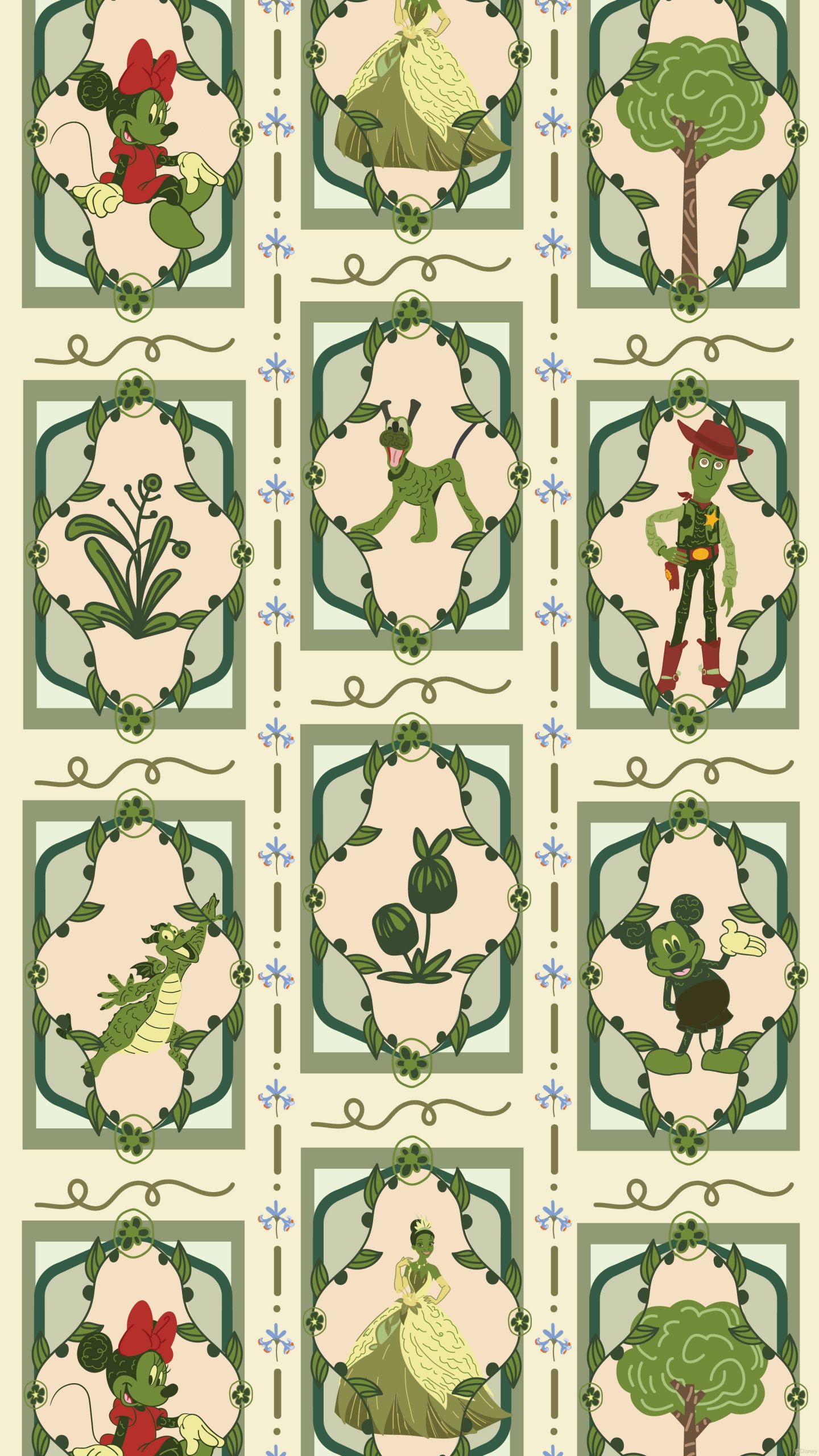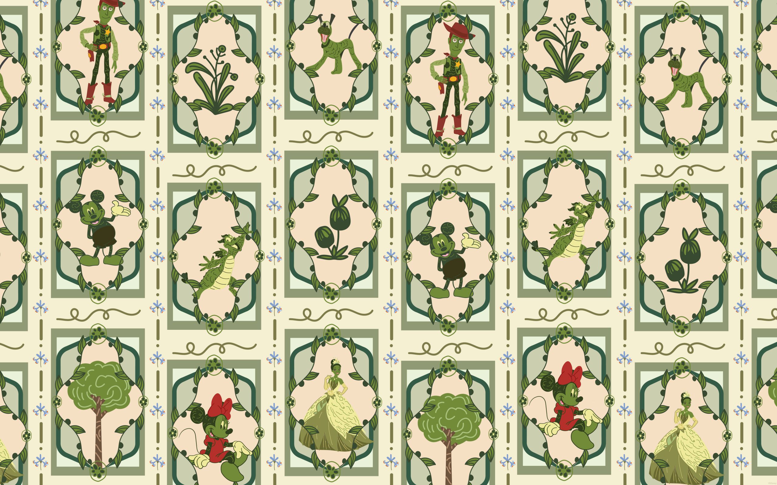 This next background is inspired by the amazing topiaries found at the EPCOT International Flower & Garden Festival. You’ll see Mickey Mouse, Minnie Mouse, Pluto, Princess Tiana, Woody, and Figment in this Disney wallpaper filled with fresh, tree accents for springtime!