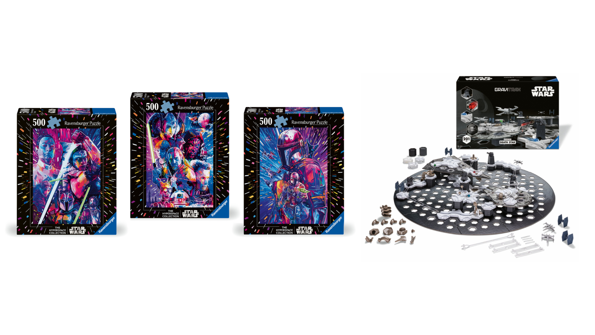 If you love board games, toys and puzzles, bring home fun for the whole family with the Star Wars™ Hyperspace Puzzle Collection, with three epic designs to choose from, or Star Wars Death Star – Marble Run from Ravensburger’s GraviTrax product line.