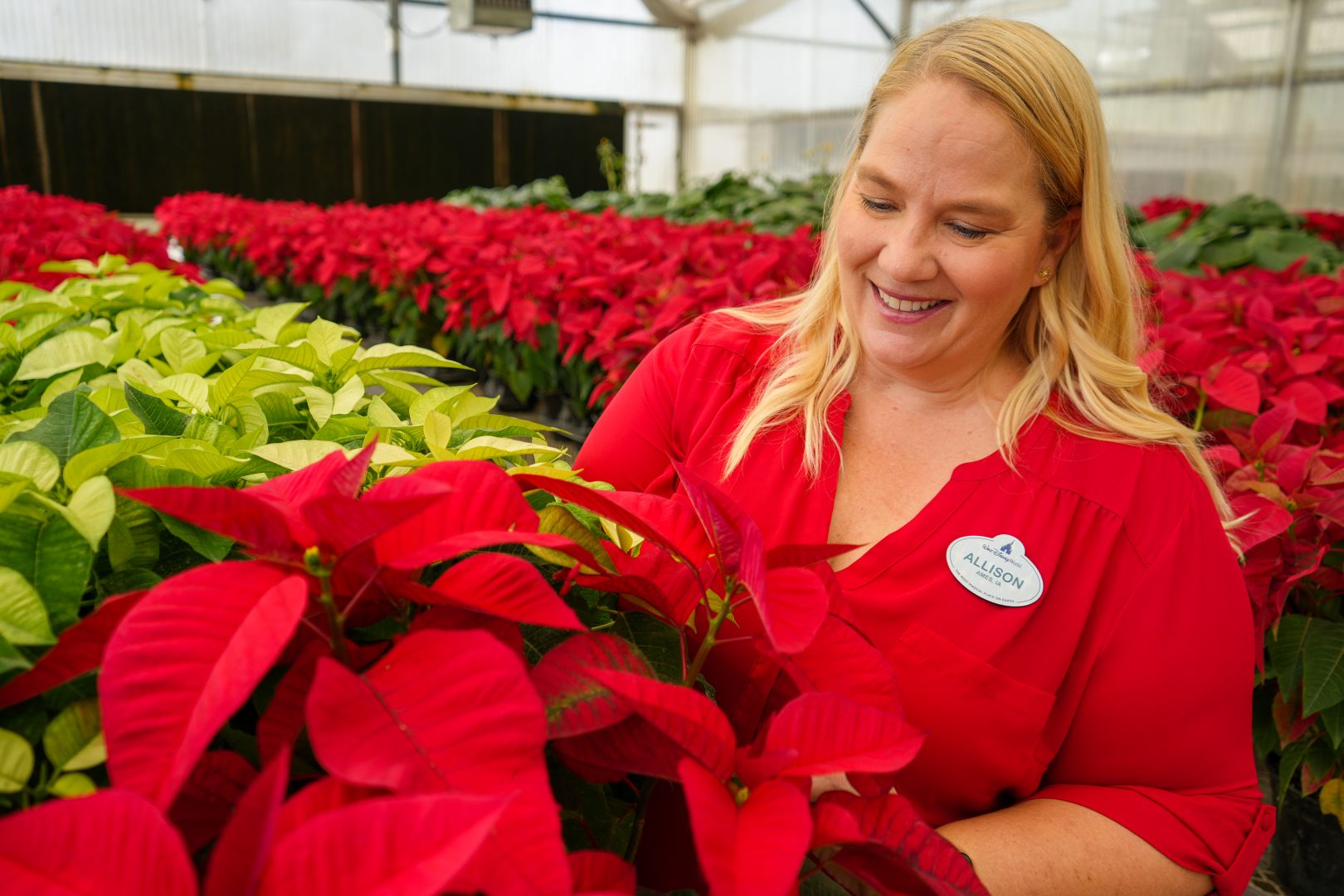Allison’s Pro Tip: If you’re caring for poinsettias at home this holiday season, make sure they have plenty of sunlight. Add water whenever the surface of the soil feels dry. Be careful not to overwater your poinsettia. Some may even surprise you and bloom again next year!