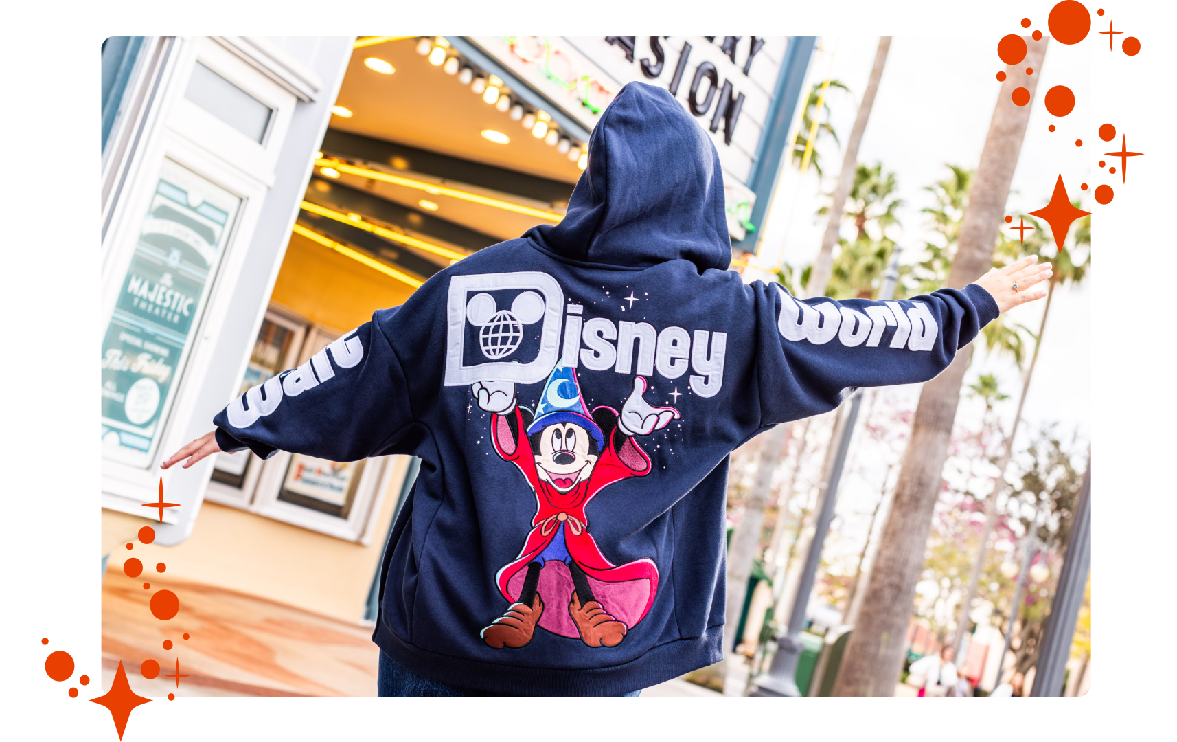 Whether you are commanding brooms or conducting an orchestra, the Sorcerer Mickey Ear Hat is the perfect accessory. A shimmering celebration of ‘The Most Magical Place on Earth,’ the hat pairs well with both zip-up hoodies, making for a cozy yet charming outfit.