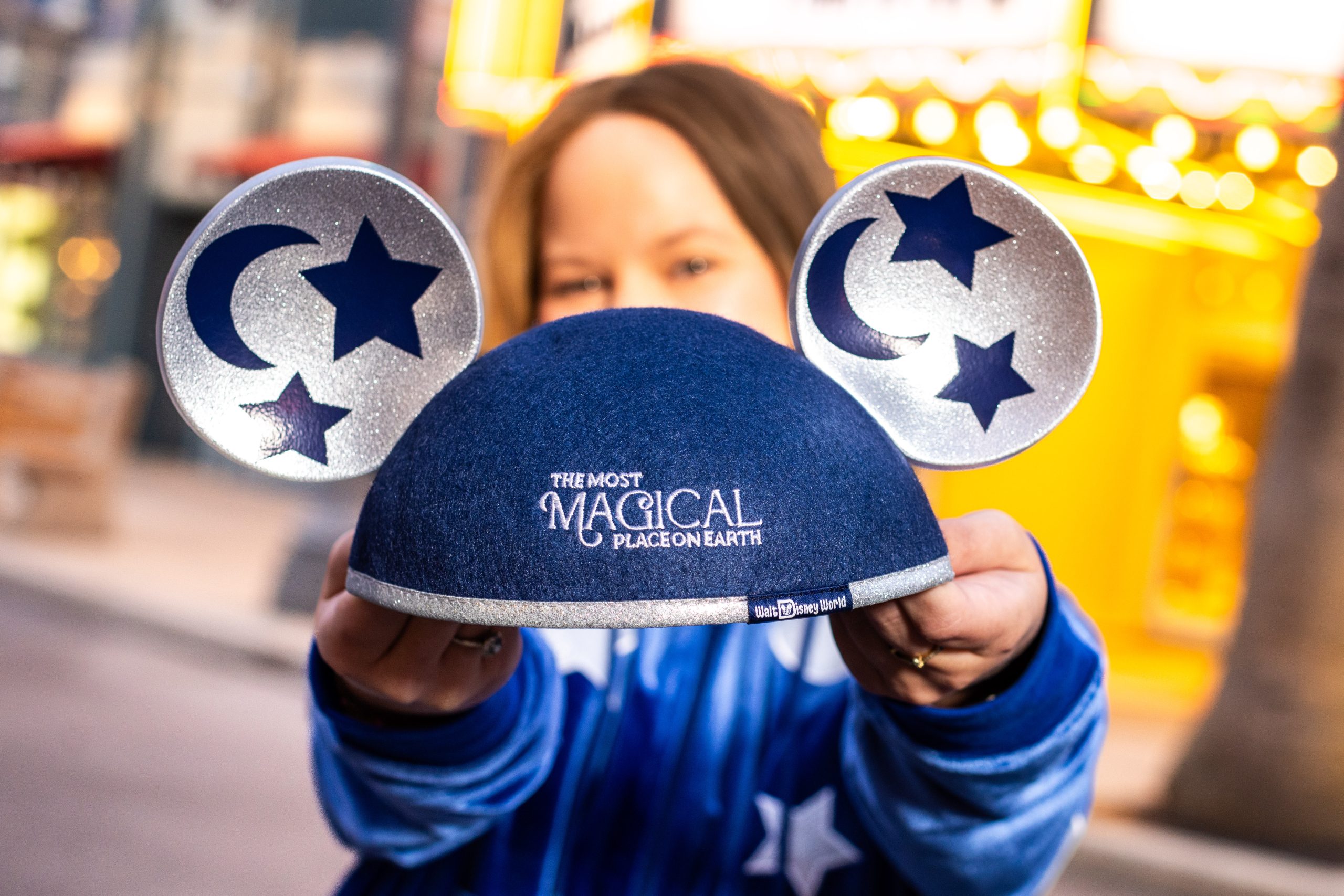 Light up your look with the iconic Sorcerer Hat straight from Disney Animation’s Fantasia. The moon and the stars shine with a press of a button, while the soft-to-touch material provides comfort throughout a night of wondrous deeds. Pssst… don’t let a certain mischievous duck try it on, or you are in for a whirlwind!