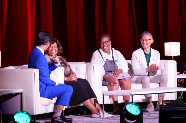 Imagineers Carmen Smith, senior vice president of creative development, Ted Robledo, executive director, and Charita Carter, executive creative producer, shared fascinating stories behind the attraction — highlighting Tiana’s story, plus the inspiration, technology, characters, and voices featured in this vibrant new story.